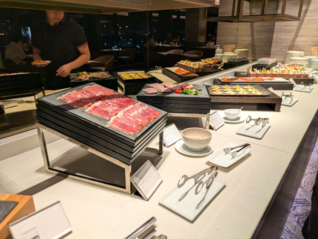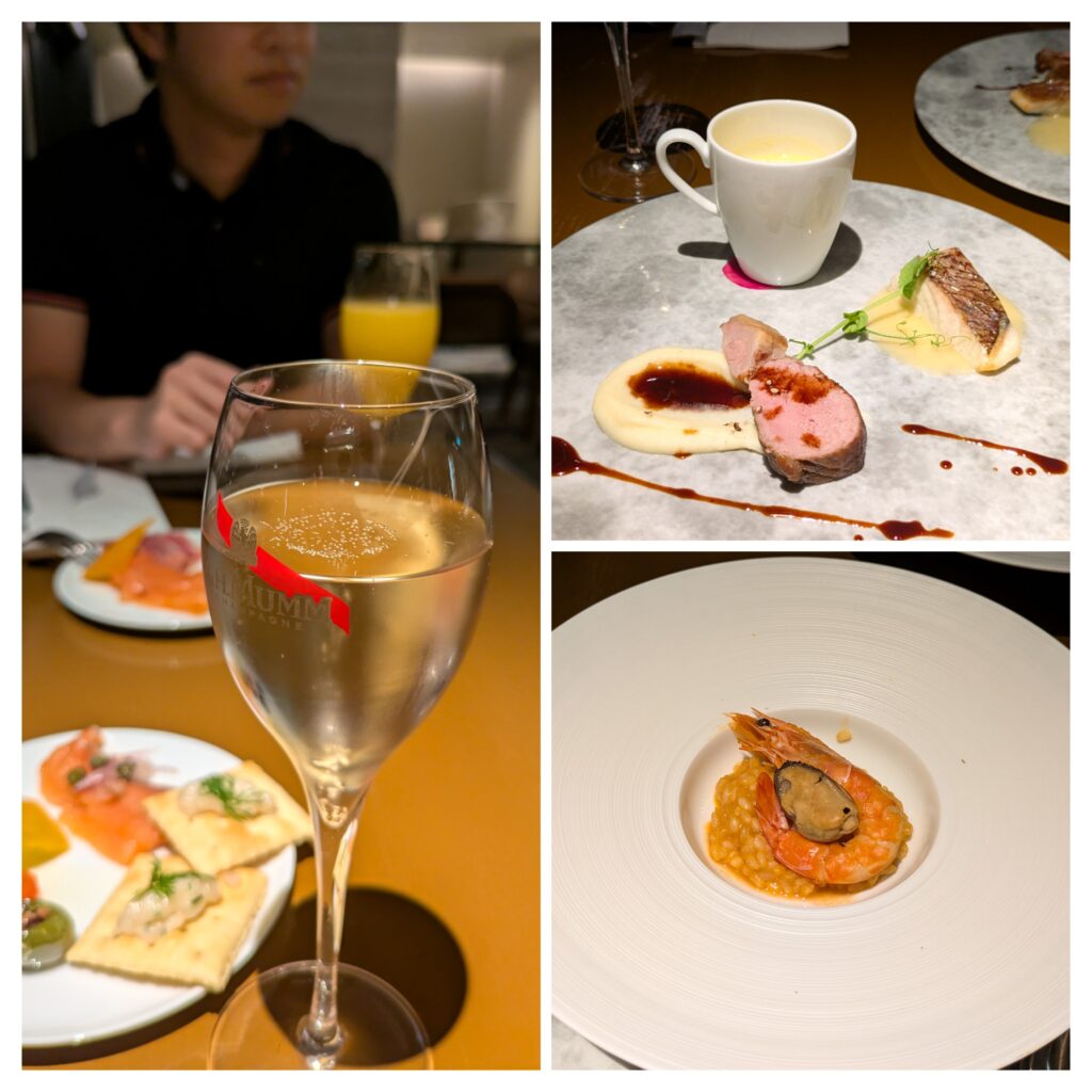 生ハムやスモークサーモン、パテドカンパーニュなどなど、ビュッフェ形式で供されて、シャンパンで乾杯🥂
