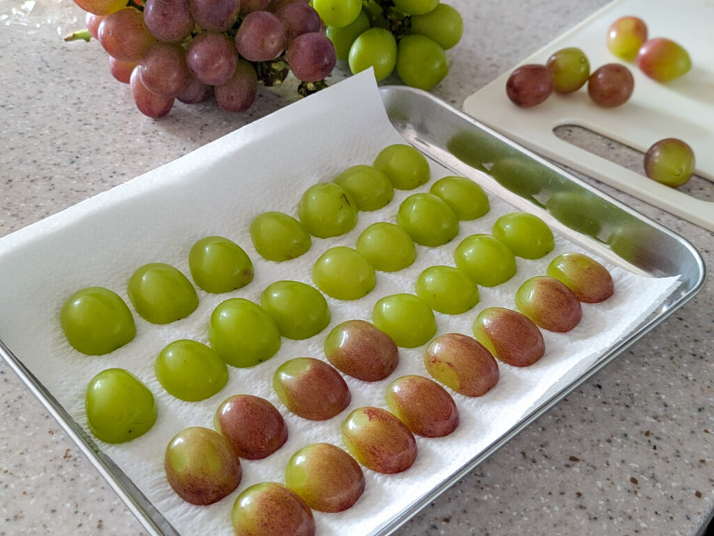 ぶどうをカットして初めて気づいたけど、シャインマスカットもクイーンルージュもどっちも中身は緑色なんだよね