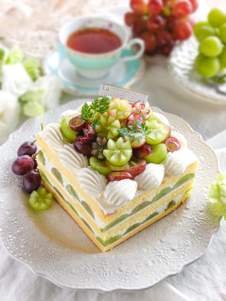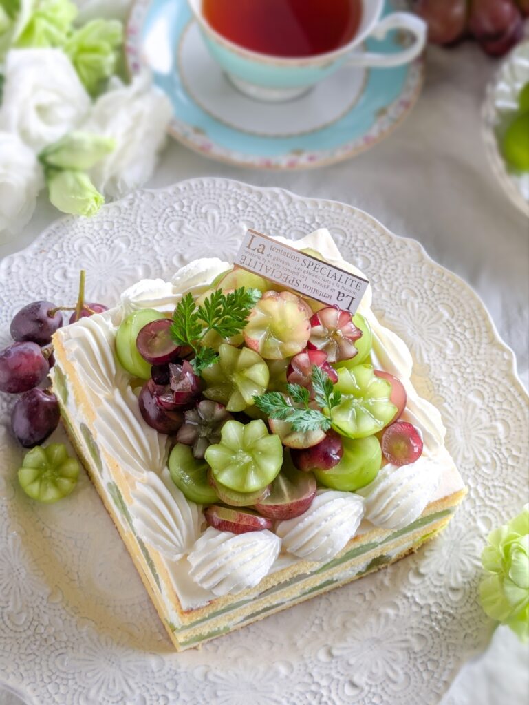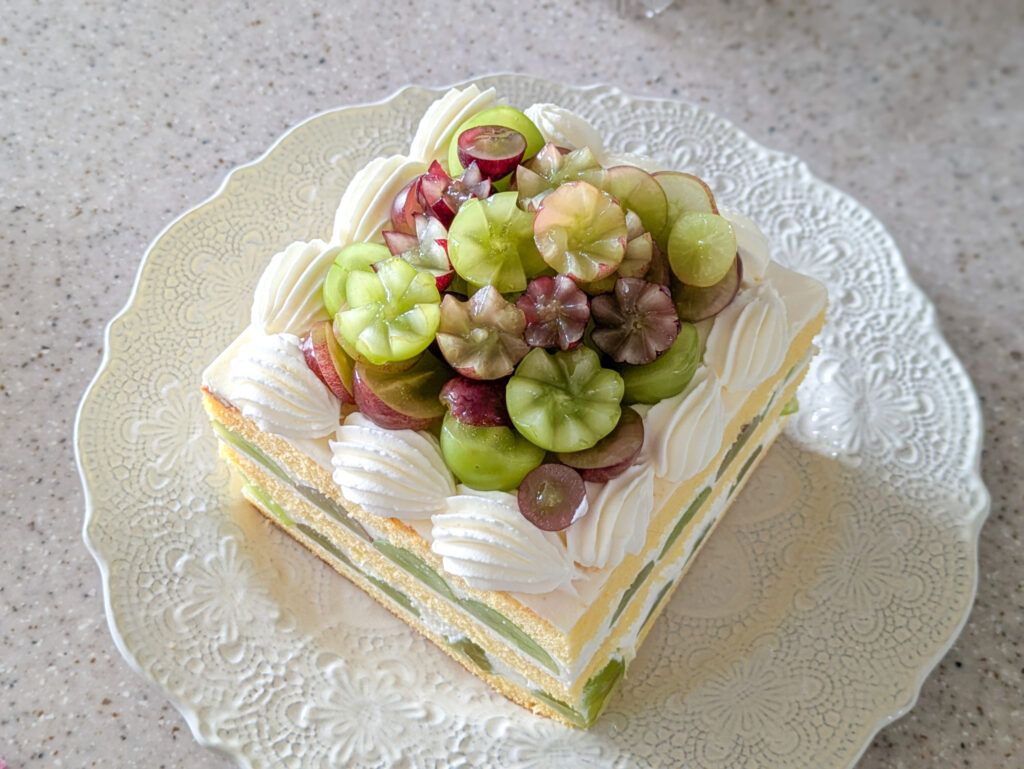 時期的にシャインマスカットが旬を迎えているので、私のバースデーケーキの主役は毎年シャインマスカット🍇