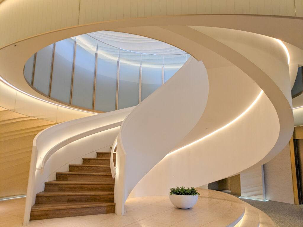 優雅なカーブを描く階段があっという間に非日常に連れて行ってくれます