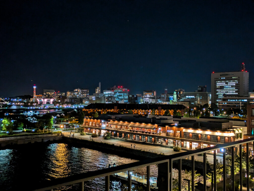 カクテルタイムでほろ酔いになったら、ルーフトップに出てみなとみらいの夜景を鑑賞