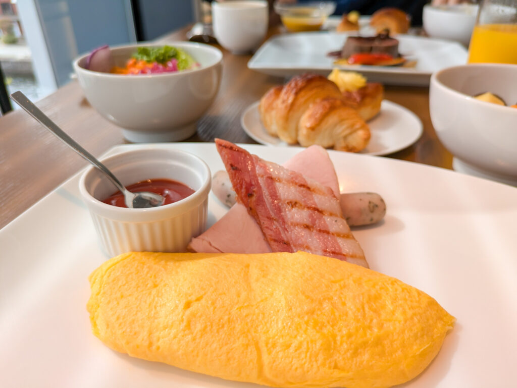 モーニングはメインディッシュを選べて、パンやサラダ、フルーツ、ドリンクなどはビュッフェ形式で自由に取れます