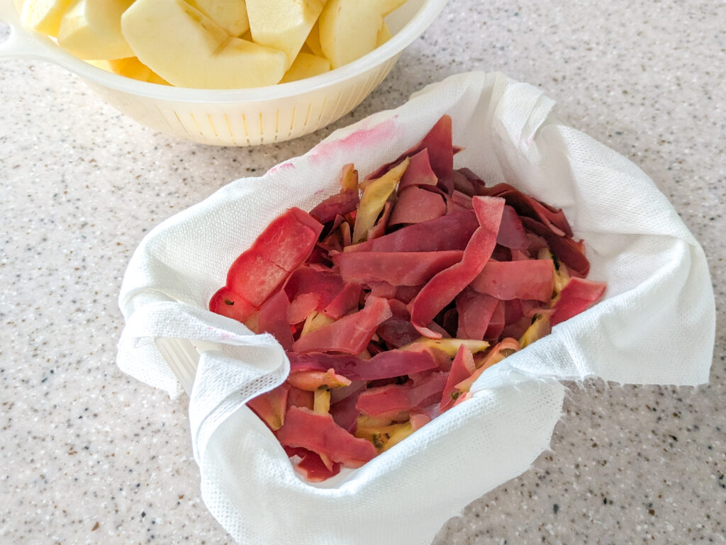 りんごの皮と種は取っておきます