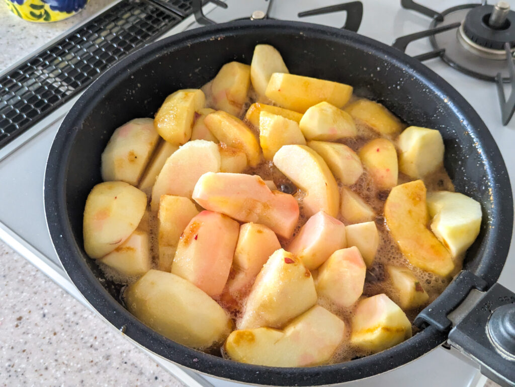 仕方ないので煮崩れした部分は全部撤収し、生き残ったりんごの加熱に専念