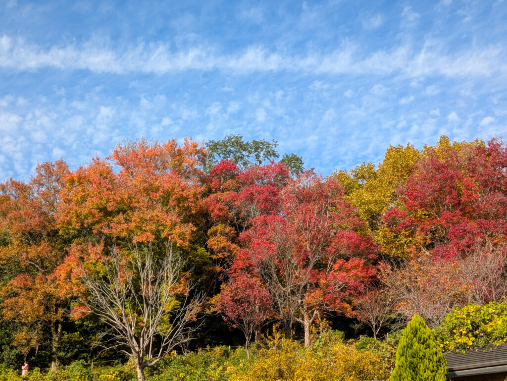 まだ緑色の木もあるけど、赤や黄色に色づいた木もあり。。。