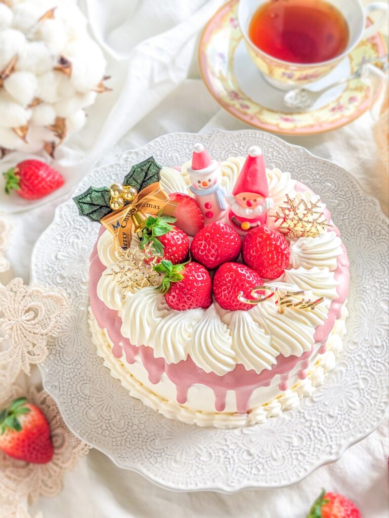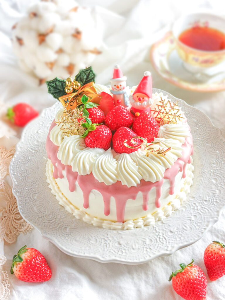 このショートケーキのテーマはね、可愛いクリスマスケーキ