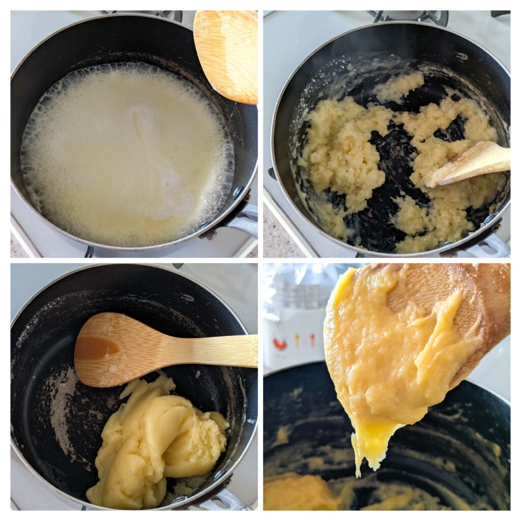 ここでしっかり火を通さないと、次のステップで卵が混ざりにくいし、最終的に膨らみの悪いシューになります