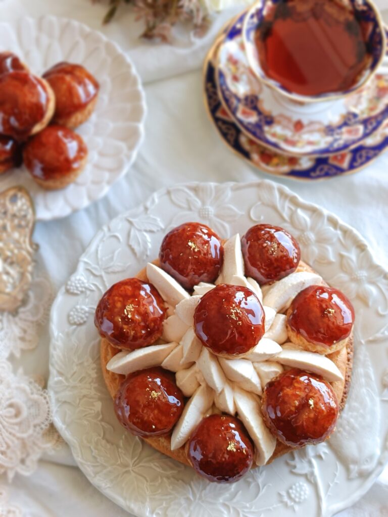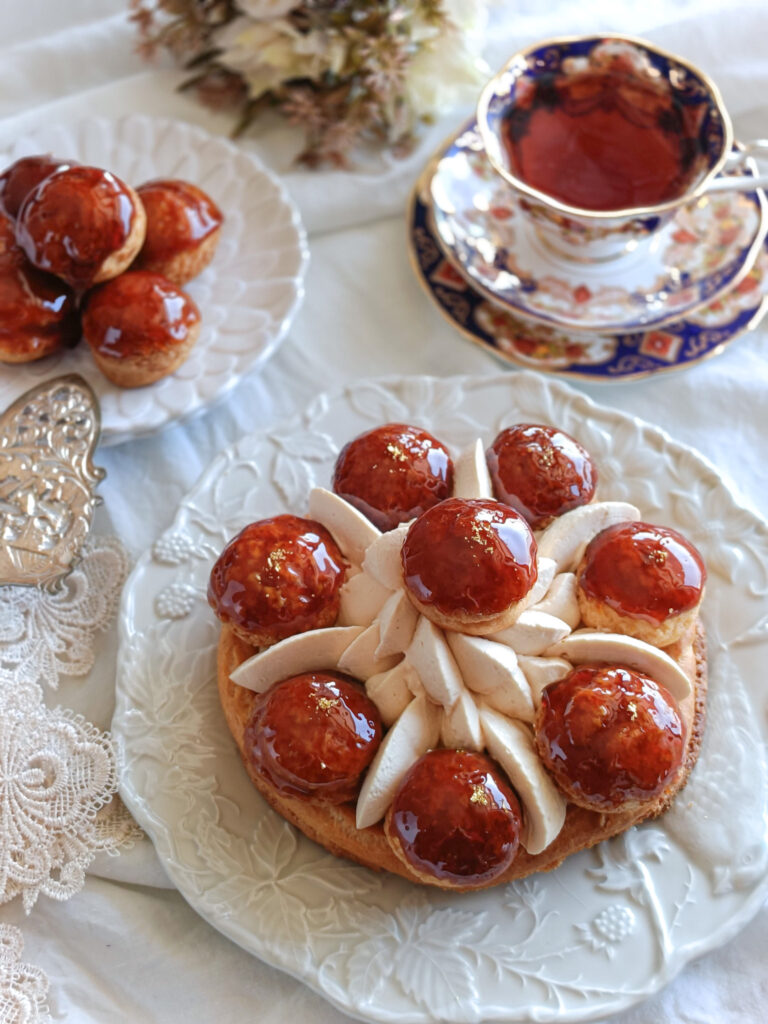 サントノーレは王冠をイメージして作られたフランスのの伝統的なお菓子で、パイ生地やシュー、濃厚なクリームを組み合わせて作ります