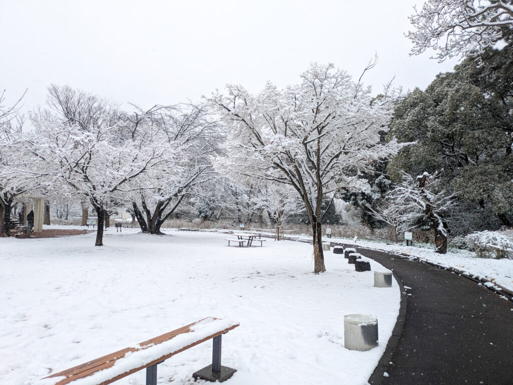 雪国出身だから見慣れた景色ではあるけど、ここで積もるのは数年ぶり