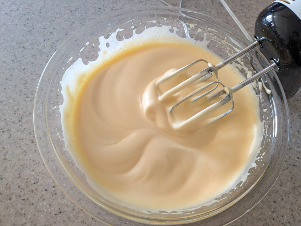 もったりとして、ハンドミキサーの羽からリボン状に流れるくらいになったらストップ