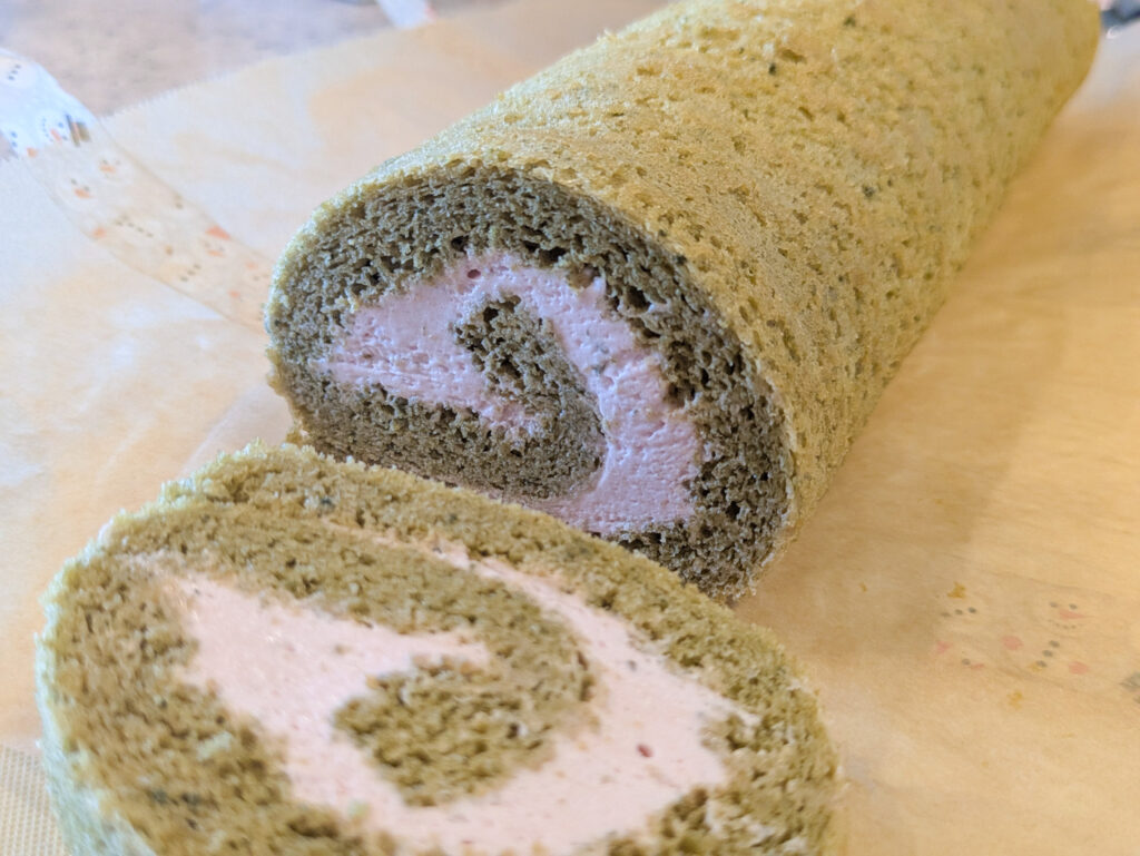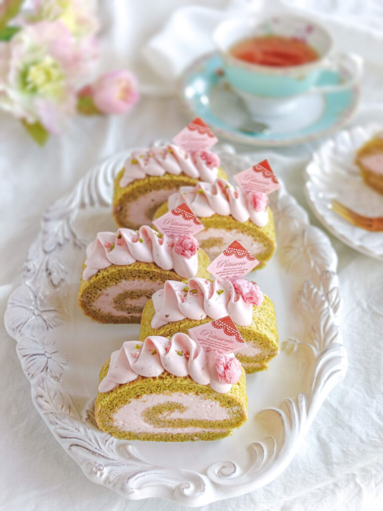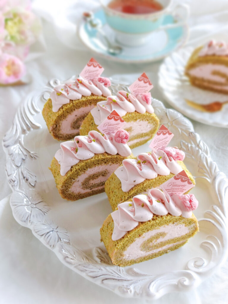 第1弾は、桜と抹茶のロールケーキ