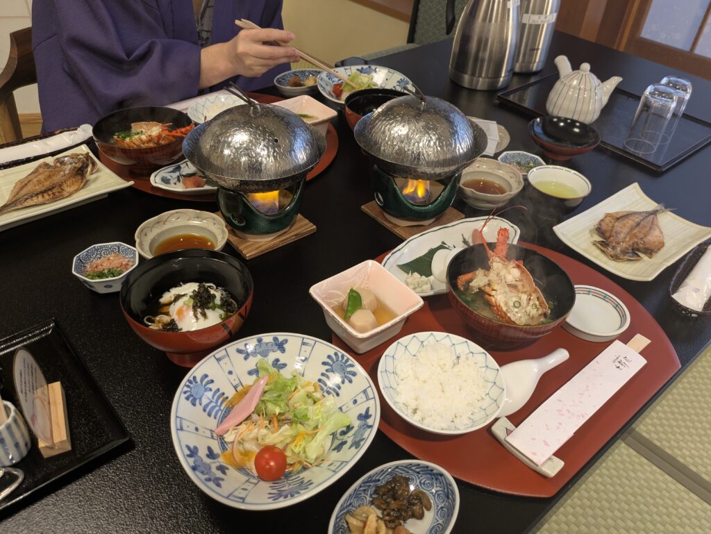最近はホテル宿泊が多くて全部自分たちで自由にできるのはいいけど、ちゃんと女将さんがお出迎えしてくれてお部屋まで案内してくれる、食事の給仕もしてくれる、帰りも見えなくなるまで頭を下げてくれるっていう、こういう日本のおもてなしって良いなって再確認できたところでした