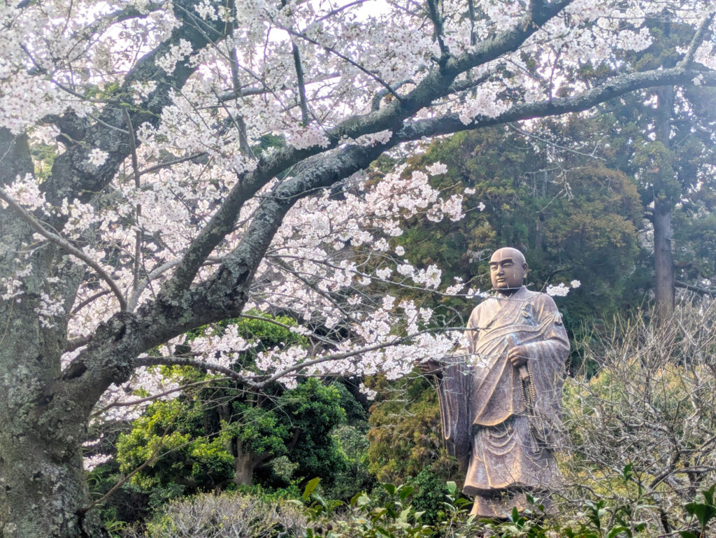 日蓮聖人銅像と一緒に🌸