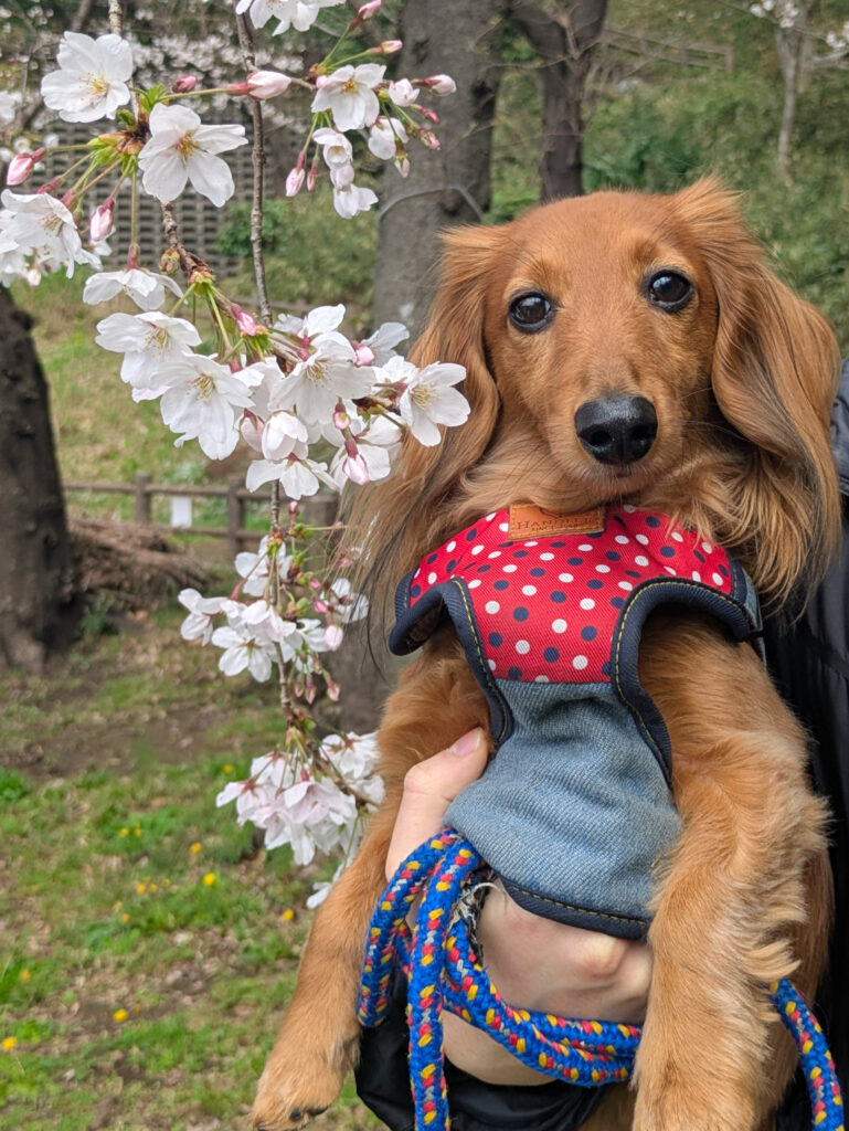 トニーと桜を一緒に📷️