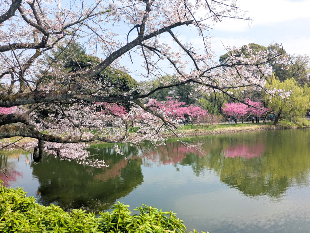 池に映る桜が美しいですね