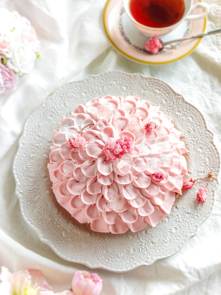 桜をイメージして、バラ口金で花びらの形に絞りました🌸
