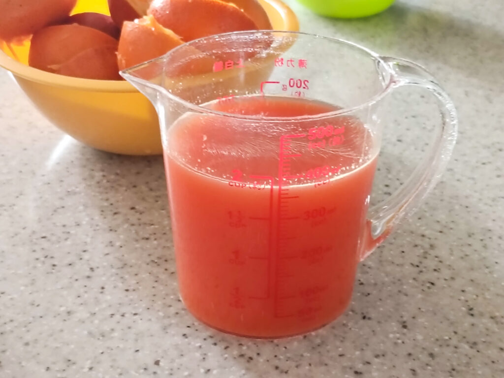 でも、果汁を絞ってみたらきれいなルビー色✨️