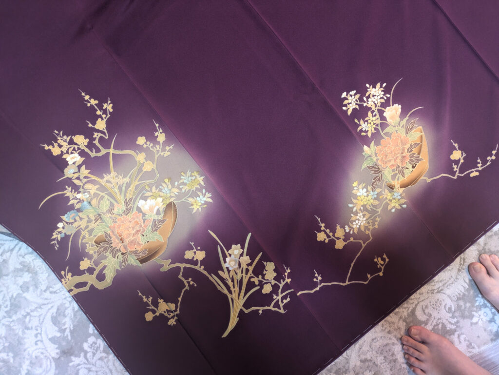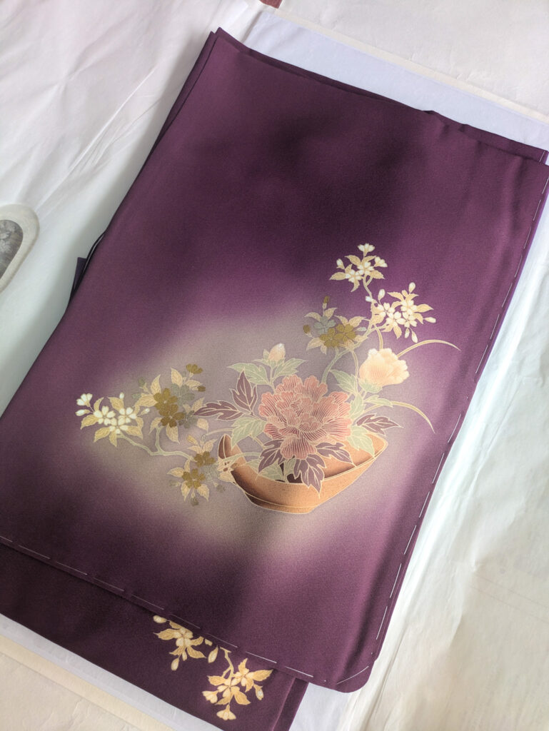 ばあちゃんの着物、保存状態が悪くて裏地がカビだらけだったり黄変が出ていたりと、かなりひどい状態でした