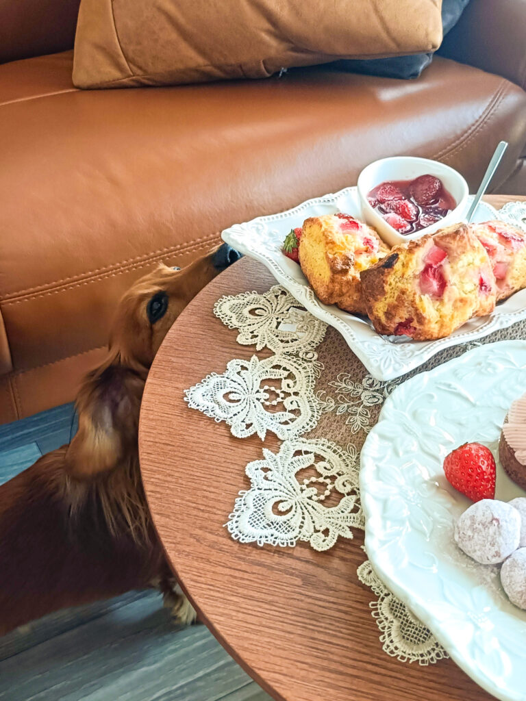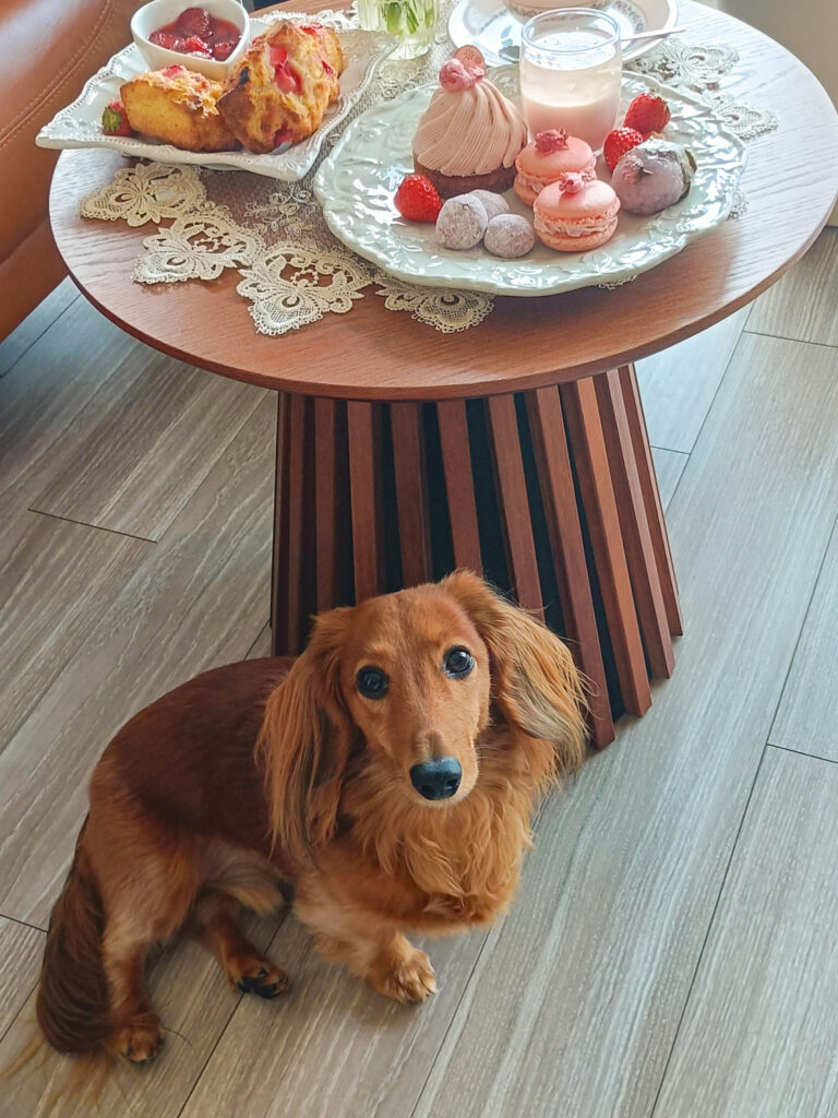 仕方がないからトニーには干し芋をあげて、スイーツに突撃しようとするトニーを止めつつのアフタヌーンティーになりました